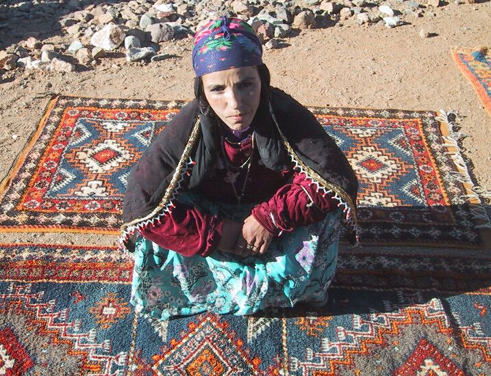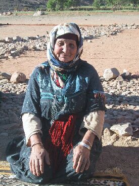 This is Sheeto the grandmother of Samira, the young woman in the green sweater who helped me so much. At first she didn't want her picture taken (I always ask permission), but I'm glad she did. You can see the warmth in her face, especially if you click on the photo. Behind her you can see a bit of green, an irrigated garden in this harsh, rocky environment. She made the rug below.