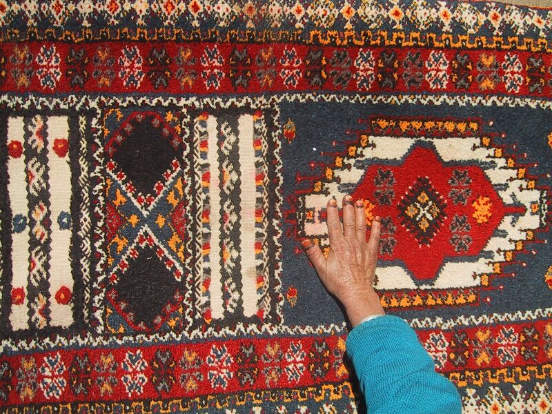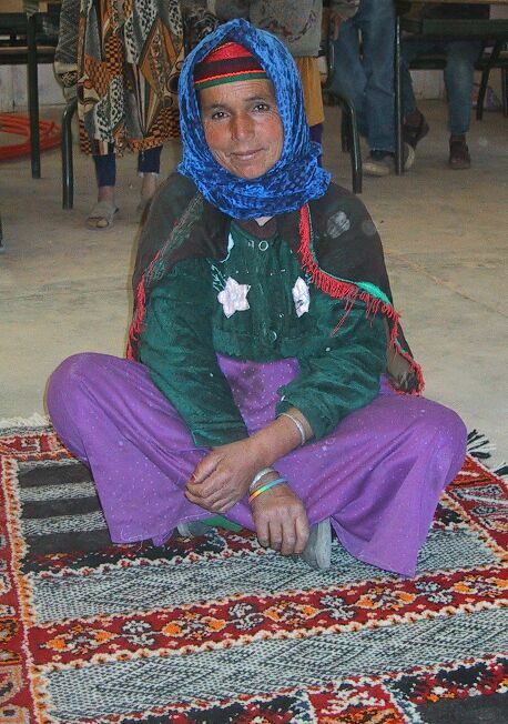 This is Ijja Boufker, age 18. Her mother is Aicha Seqqat, one of the village's women leaders and an excellent weaver. Her daughter also weaves well, and uses natural dyes sometimes like her mother.