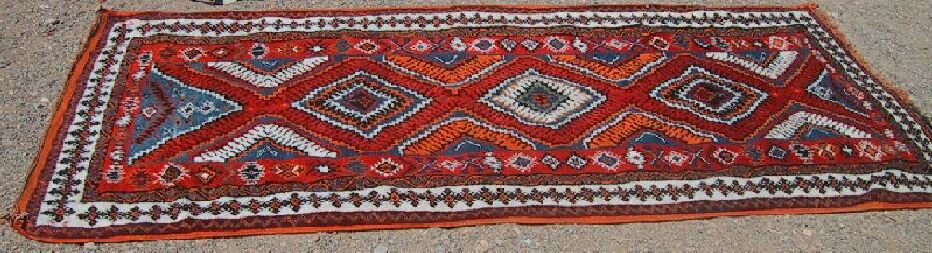 Piece 2.11408 is a small belt woven in the old style. You will see many of these in the Marrakesh bazaars, but they are not nearly so finely woven, and they use harsh colors, mostly red, blue and white. The colors here also include red and blue, but are much softer, and the design is much finer. You can click on the photo to see the detail. It is about 2 1/2 feet long and 3 inches wide and costs $65. SOLD, but this belt can be remade to order, and in different lengths.