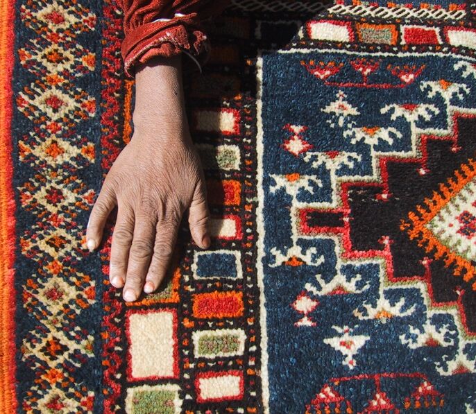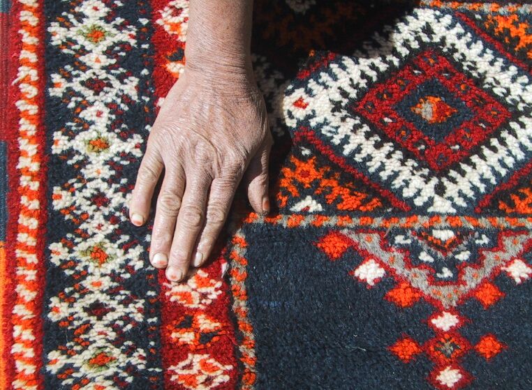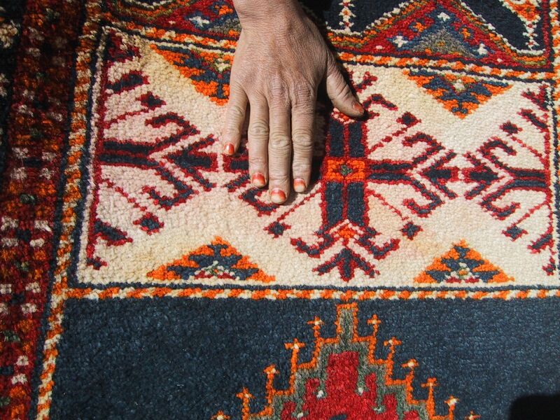 The rug below was made by Rahma Elhakimi, who did not want to be photographed. Her husband buys and sells livestock, and they have two sons and two daughters. Two of the children are in school, and the other two are still too young.