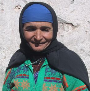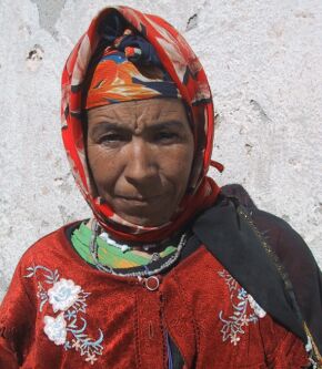 This is Anaya Bou Said Ali and she made the two rugs below. Her husband is a farmer and they have nine children, all of them still living at home. An older son is in charge of the electricity generator for the village; one night he left it on an hour late for us because we needed to charge our photo equipment. Four of the children are daughters, and they helped her with the rugs below. If the rugs sell she would buy wool to make more, and food for the family. She thought there would probably be no money left beyond that, but if there were she would buy clothes for her daughters.